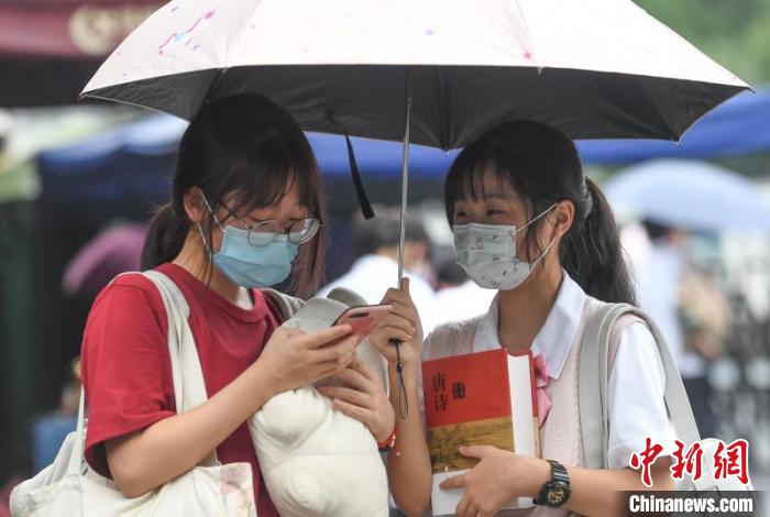 浙江高考結(jié)束首日,在杭州學軍中學門口,考生抱著復(fù)習資料準備回家?!⊥鮿偂z