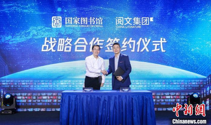 國家圖書館館長饒權(左)與閱文集團首席執(zhí)行官程武(右) 主辦方供圖