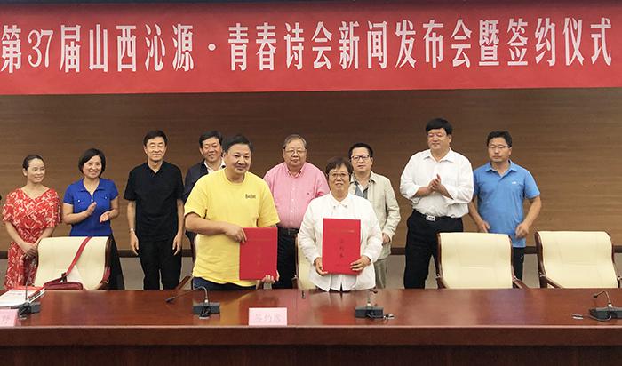 沁源縣委書記金所軍介紹沁源縣盛產(chǎn)油松、褐馬雞,村村有秧歌隊(duì)和籃球場,有山有水,美麗又美好。他將作為“全國森林旅游示范縣”的沁源縣詩意概括為“三晉大地的香格里拉”“近在咫尺的桃花源”。沁源縣委宣傳部部長黃貴河對沁源縣的文學(xué)創(chuàng)作情況及第37屆“青春詩會(huì)”活動(dòng)承辦設(shè)想進(jìn)行了介紹。發(fā)布會(huì)結(jié)束后,沁源縣政府副縣長李建萍與《詩刊》事業(yè)發(fā)展部副主任藍(lán)野簽定了合作協(xié)議。