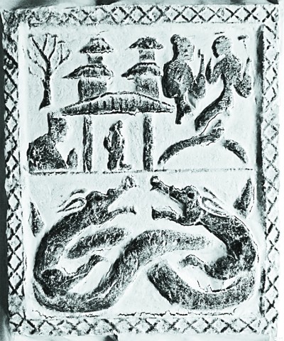 四川漢畫像石拓片,右上方為人首蛇身的伏羲女媧。圖片選自《吾國與吾名——中國歷代國號與古今名稱研究》