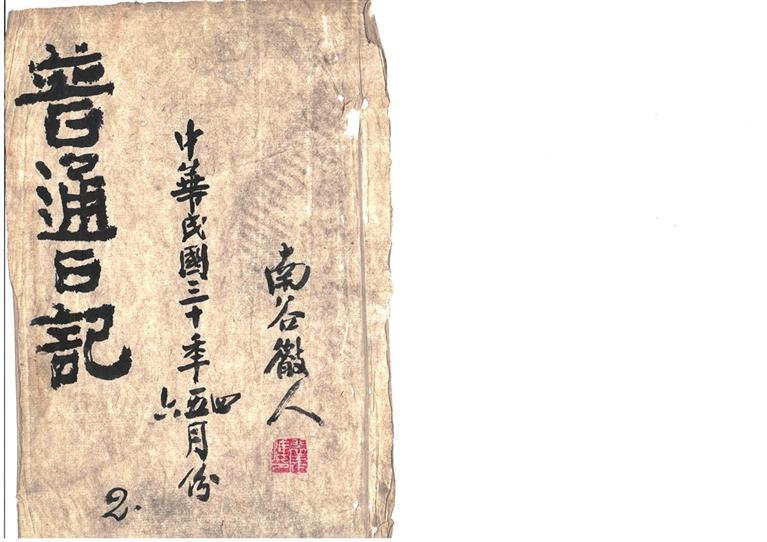金城古玩城軒潤堂主人馬先生,近日重金收購一冊裴建準(zhǔn)《普通日記》,行書寫本,雙頁折疊裝訂,凡66面。面長31厘米,闊24厘米。每面十行字,行22、23、24字不等。封面題三行字:左上題“普通日記”四大字,下題阿拉伯?dāng)?shù)字“2”;中題“中華民國三十年四、五、六月份”;右題“南谷山人”,鈐“裴建準(zhǔn)印”白文印。何以稱《普通日記》呢?他是否還有其他《日記》待考。