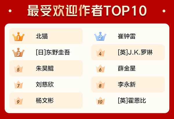 這些搜索熱詞同樣帶動了相關(guān)圖書的銷售。兒童書作家北貓和崔鐘雷成為京東圖書2020年最受歡迎作者的第一名和第二名。在“哈利·波特”和“三體”成為熱搜詞的同時,作家J.K.羅琳和劉慈欣也入圍京東圖書2020年最受歡迎作者TOP10。