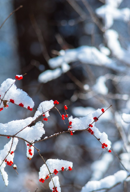 許多人走到這里,停下了腳步,被這雪后滿樹熱烈的紅色吸引。風(fēng)在這個(gè)時(shí)刻,沒有了聲息,似乎是因?yàn)檫@一簇炫目的紅。天空是清澈透明的藍(lán),空氣中彌漫著清冽的干枯植物的氣息,這氣息來自頂著雪花的干草、沉睡的樹木、滄桑的松柏、埋藏在雪下的紅隼的羽毛、雨燕干燥的糞便,以及鳥雀熱愛的金銀木酸甜可口的果實(shí)。