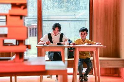 5月8日,一對(duì)母子在福建省晉江市東石鎮(zhèn)“母親的房子”圖書館內(nèi)閱讀。今年5月,福建省晉江市東石鎮(zhèn)“母親的房子”圖書館正式對(duì)外開放。“母親的房子”是福建省晉江東石籍作家蔡崇達(dá)《皮囊》書里所描述的一座房子?,F(xiàn)在,這座房子被他改造成了一座現(xiàn)代風(fēng)格與閩南特色相融合的公益圖書館,成為當(dāng)?shù)毓参幕囊徊糠?。新華社發(fā)
