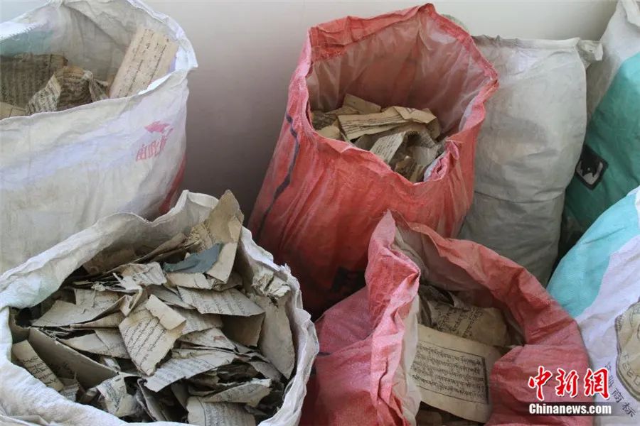 挖掘工作持續(xù)了3天才結(jié)束。由于當(dāng)時寺院條件簡陋,古籍散葉被臨時裝入編織袋中,足足裝滿了68袋。
