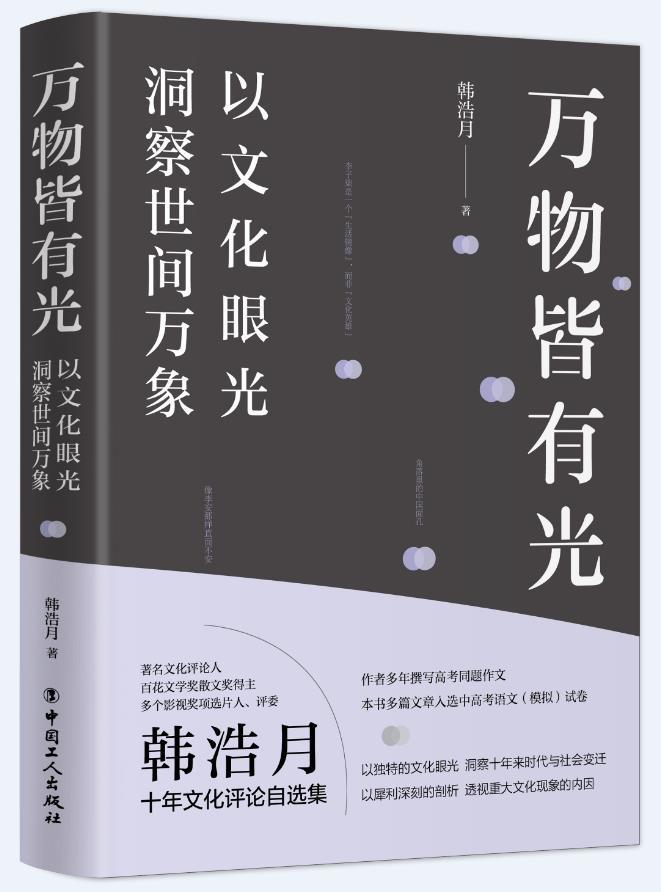 近日,文化評論人韓浩月新作《萬物皆有光》由中國工人出版社出版。韓浩月深耕于文化領(lǐng)域評論,對文化熱點(diǎn)、現(xiàn)象與人物的評論有自己獨(dú)到的視角與見解。本書是其近十年來發(fā)表于各大媒體的評論精選集。