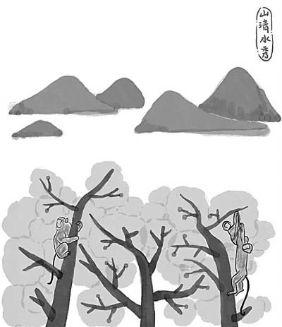 《猴兒與少年》中的“猴兒大學(xué)士三少爺”是王蒙貢獻(xiàn)給文壇的一個生動有趣的藝術(shù)形象,從生物學(xué)、生態(tài)學(xué)、生命學(xué)的意義上,王蒙寫活了“猴兒性”。猴兒三少的伶俐機(jī)智、閃轉(zhuǎn)騰挪,自由自在自如自安自鬧自玩,不怕人、不服人、不討好于人的獨(dú)特“個性”,給人留下深刻印象,特別是對猴兒哥二叔耍猴兒、“三少爺照鏡子”的描寫,簡直妙絕——左照右看,東抓西撓,前伸后縮,急躁狂亂,猴態(tài)百出。從耍猴兒的角度看,實(shí)在趣味盎然。