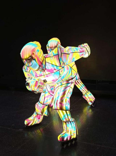 “未來冰球隊(duì)”演員肖遙和隊(duì)友身著表演服訓(xùn)練。受訪者供圖