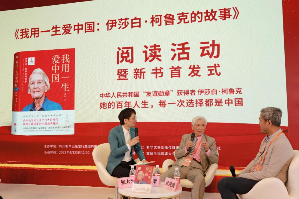 2022年度國(guó)家出版基金資助項(xiàng)目、反映中華人民共和國(guó)“友誼勛章”獲得者伊莎白·柯魯克百年人生故事的圖書《我用一生愛(ài)中國(guó):伊莎白·柯魯克的故事》亮相23日開幕的首屆全民閱讀大會(huì)。