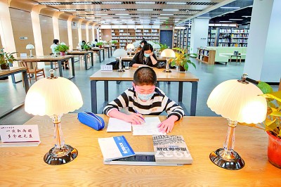 江蘇省南京市六合區(qū)圖書館成為市民讀書學(xué)習(xí)的理想場所。史俊攝/光明圖片