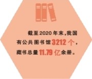 數(shù)據(jù)統(tǒng)計,截至2020年末,我國有公共圖書館3212個,藏書總量11.79億余冊,實際使用房屋建筑面積1785.77萬平方米,平均每萬人公共圖書館建筑面積為126.49平方米。