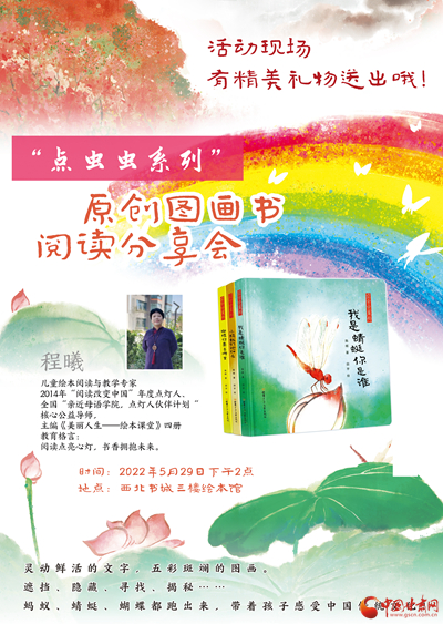 主題活動(dòng)包括聯(lián)合甘肅少年兒童出版社邀請(qǐng)兒童繪本閱讀與教育專家程曦為小讀者分享“點(diǎn)蟲(chóng)蟲(chóng)系列”原創(chuàng)圖畫(huà)書(shū),西北書(shū)城“快樂(lè)童年·好書(shū)相伴”主題6.1折兒童圖書(shū)展,線上微商城“抽盲盒”,“小劇人”兒童沉浸式閱讀,筱筱老師講繪本故事,親子手工制作“小粽子”,與蘭州市圖書(shū)館共同開(kāi)展“慶六一·迎端午”我是朗讀者活動(dòng)。