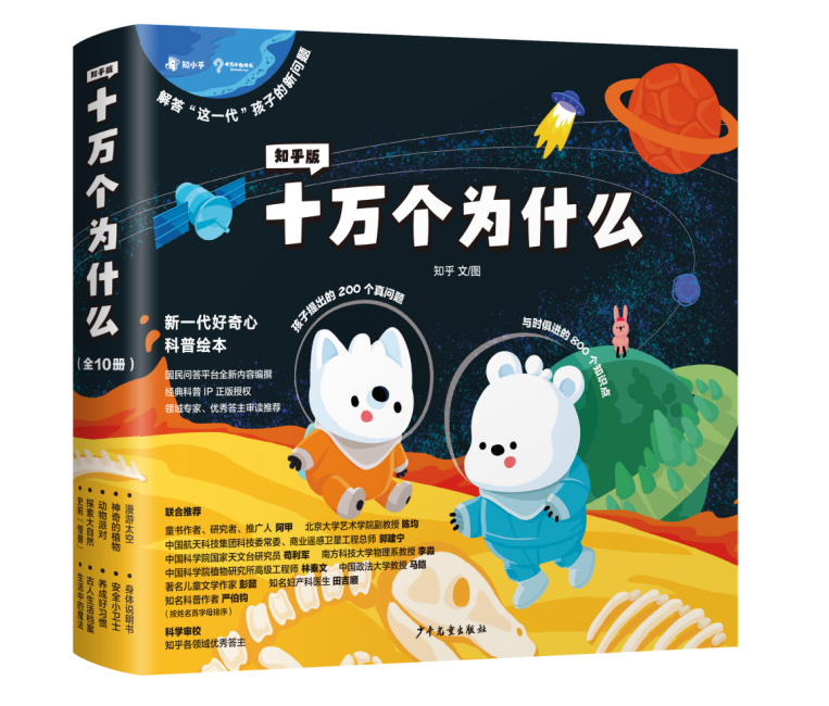 不是所有的科普讀物,都能叫《十萬個(gè)為什么》。1961年至今,《十萬個(gè)為什么》累計(jì)發(fā)行量近2億冊,是至今仍未被超越的現(xiàn)象級科普圖書。這套書在普及和傳播科學(xué)知識(shí)方面,發(fā)揮了非常積極的作用,影響了中國幾代青少年,堪稱是新中國影響力最大的青少年科學(xué)啟蒙讀物。作為國民級科普經(jīng)典,《十萬個(gè)為什么》誕生至今已經(jīng)60多年。盡管已經(jīng)有了之前版本的《十萬個(gè)為什么》,但是時(shí)代是不斷進(jìn)步的,特別是進(jìn)入數(shù)碼時(shí)代以后,孩子們比以往的所有時(shí)代,擁有著更多的信息和知識(shí),腦袋瓜里也萌發(fā)著更新的問題和疑惑。他們發(fā)出的越來越多“超綱”問題,是以前的課本、科普書上沒有的,也讓父母們經(jīng)常面對“不知如何作答”的情況。新的“為什么”,需要新的解答。在少兒經(jīng)典科普《十萬個(gè)為什么》出版60周年之際,知乎攜手上海少年兒童出版社,收集當(dāng)代孩子的真問題,邀請各領(lǐng)域機(jī)構(gòu)和專家為孩子們寫下新答案,推出了全新的知乎版《十萬個(gè)為什么》,盡量讓孩子們的問題都有答案。