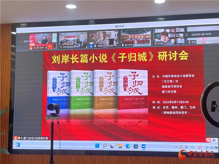 中國(guó)甘肅網(wǎng)6月12日訊 (本網(wǎng)記者 張?zhí)m琴)作為敦煌文藝出版社目前出版的“重量級(jí)”圖書(shū),劉岸長(zhǎng)篇小說(shuō)《子歸城》受到國(guó)內(nèi)各領(lǐng)域關(guān)注和好評(píng)。6月11上午,劉岸長(zhǎng)篇小說(shuō)《子歸城》研討會(huì)在北京、福州、蘭州、廈門(mén)四地,以線上線下聯(lián)動(dòng)的方式舉行。