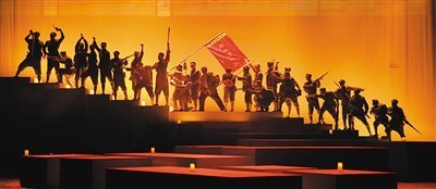 類似這樣耐人尋味、畫龍點睛的改編還有許多,比如原著中的“小彭”變成了“小火柴”,代表了點燃的微火和一種希望;“答答滴滴滴,滴滴滴答答”不僅是符號化的電碼,而且成為了最好的祝福,一句臺詞蘊含多層含義,滿含深情。從“最后的電波”到“鐵流東進”,更展現(xiàn)了一種大歷史觀、大時代觀,真正符合立體的舞臺呈現(xiàn)。