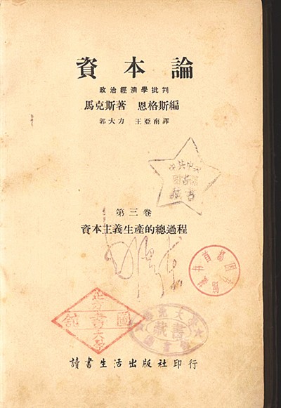 人大圖書館還藏有郭大力、王亞南翻譯的中國(guó)首個(gè)《資本論》全譯本的初印本。這是毛澤東同志贈(zèng)送的,封面鈐有“毛澤東”簽名章。