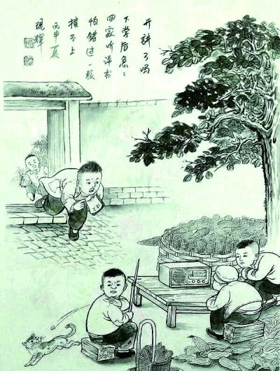 劉現(xiàn)輝的一套四冊(cè)繪畫(huà)作品《童年那些事兒》(花山文藝出版社出版),就是一次目光穿越時(shí)光阻隔,對(duì)童年和故鄉(xiāng)的深情佇望。經(jīng)由長(zhǎng)久而專(zhuān)注的凝視,一縷縷游絲般輕淡的鄉(xiāng)思,逐漸擴(kuò)展匯聚成一種濃郁的故土深情,仿佛滿天云錦,在靈魂的天空閃現(xiàn)著動(dòng)人的光華。