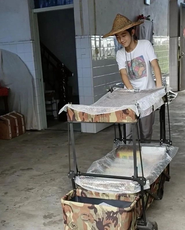 頭上戴著斗笠,臉上掛著靦腆的笑,推著裝滿(mǎn)課外書(shū)的迷彩小推車(chē),趕往外婆家附近的集市擺攤。最近,14歲少年王子悅開(kāi)辦“流動(dòng)圖書(shū)館”的視頻感動(dòng)了很多網(wǎng)友。
