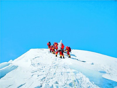 70多年來,世界各地的眾多登山者,紛紛向珠穆朗瑪峰發(fā)起挑戰(zhàn)。更好的攀登裝備,精準(zhǔn)的天氣預(yù)報和更多的人參加攀登,成功登頂珠峰的登山者越來越多,登頂,從專業(yè)登山家的非常壯舉,發(fā)展到普通登山愛好者也能實現(xiàn)的愿景。盡管在技術(shù)層面上,登頂?shù)某晒β蚀蟠筇岣?,人?shù)與日俱增。但是,到今天為止,攀登珠穆朗瑪峰,仍然是人類膜拜大自然最虔誠的神圣儀式,仍然是人類探索精神與冒險火花具有獨創(chuàng)性的體現(xiàn)方式。