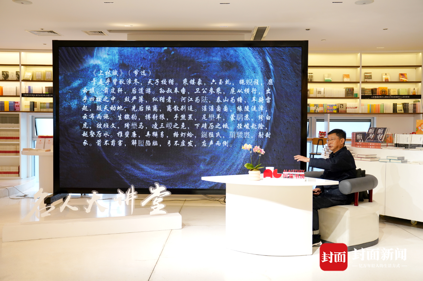 作為資深作家,阿來在講述司馬相如其人以及他所處的時(shí)代特點(diǎn)、文史知識(shí)同時(shí),還重點(diǎn)從文學(xué)的角度,講解了相關(guān)文史記載文章,還特別以《子虛賦》《上林賦》等司馬相如的作品為例,逐字逐句進(jìn)行分析“賦”這個(gè)文體的優(yōu)、缺點(diǎn)。比如在《上林賦》中,司馬相如寫楚國(guó)之子虛先生出使齊國(guó),子虛向?yàn)跤邢壬v述隨齊王出獵,齊王問及楚國(guó),子虛極力鋪排楚國(guó)之廣大豐饒,以至云夢(mèng)不過是其后花園之小小一角。烏有不服,便以齊國(guó)之大海名山、異方殊類,傲視子虛。