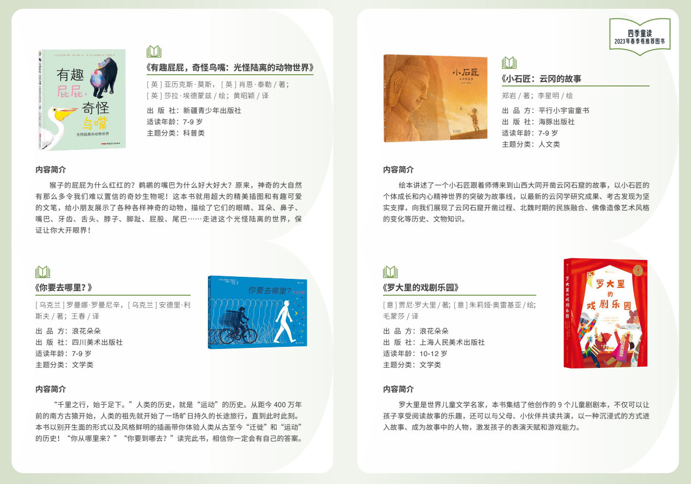 國(guó)家圖書館發(fā)布2023年“四季童讀”春季卷書單