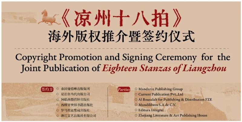 6月15日下午,由浙江出版聯(lián)合集團(tuán)主辦、浙江文藝出版社承辦的《涼州十八拍》海外版權(quán)推介暨簽約儀式,將在第二十九屆北京國際圖書博覽會(huì)舉辦。儀式現(xiàn)場,葉舟就《涼州十八拍》發(fā)表主旨演講,并將簽訂《涼州十八拍》泰語、尼泊爾語、阿拉伯語、西班牙語、羅馬尼亞語等語種版權(quán)輸出協(xié)議。