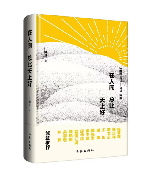 近日,江耀進(jìn)詩(shī)選《在人間總比天上好》由作家出版社出版。詩(shī)選共收入作者近三年來(lái)創(chuàng)作的247首詩(shī)歌作品,分為六集,即:“山河歲月”“生命瞬間”“塵世片斷”“城市鏡像”“日常觀照”和“感恩親人”。