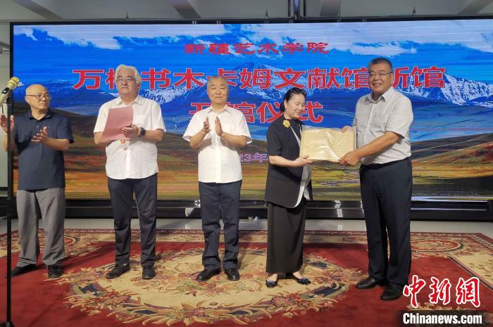 中新網(wǎng)烏魯木齊7月20日電 (胡嘉琛)“木卡姆記譜手稿不應(yīng)塵封在書柜,應(yīng)當(dāng)讓更多人了解它、傳承它。把它交到專心做研究的學(xué)者手中,我很放心。”萬桐書之女萬靜20日在新疆烏魯木齊說。當(dāng)日,萬桐書木卡姆文獻(xiàn)館新館在新疆藝術(shù)學(xué)院開館,萬靜將萬桐書1952年至1957年間收集整理的木卡姆記譜手稿贈給校方。