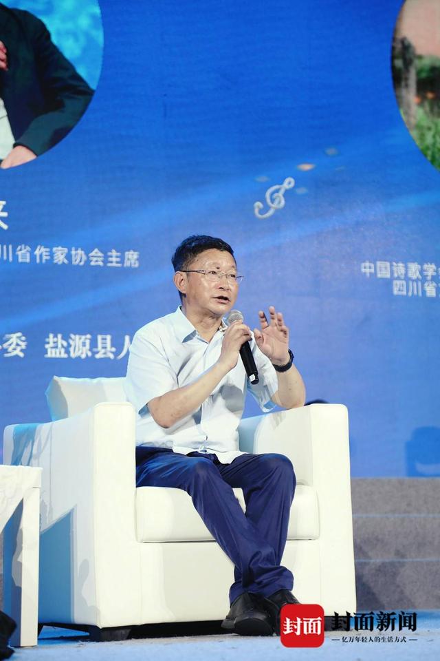 現(xiàn)場,阿來、陳智林與龔學(xué)敏就“詩歌創(chuàng)作如何與音樂結(jié)合”“詩歌如何賦能鹽源縣文旅發(fā)展”“如何打造四川特色的文化事業(yè)和文化產(chǎn)業(yè)”等議題展開了對(duì)話,深入探討鹽源的詩與遠(yuǎn)方。