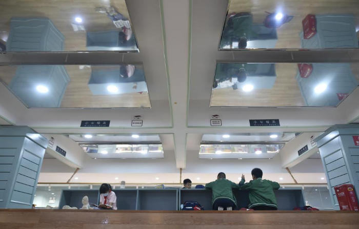 10月18日,小學生在鄭州市緯五路第一小學校園閱讀中心內(nèi)閱讀。