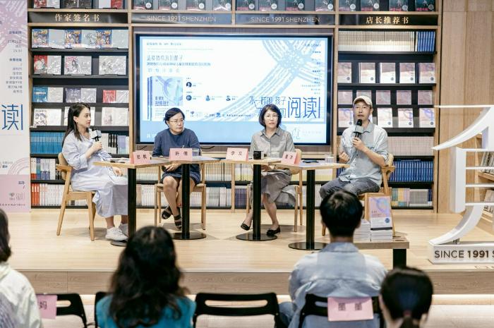 分享會(huì)上,閱讀公益組織“愛閱公益基金會(huì)”的李文、兒童有聲書品牌“老墨家族”的“墨叔叔”、學(xué)習(xí)困難關(guān)愛協(xié)會(huì)“學(xué)愛會(huì)”許倩、讀困家長(zhǎng)社群“飛米力”(本書翻譯團(tuán)隊(duì))主理人鄭楓,四位嘉賓,帶著各自不同的成長(zhǎng)和行業(yè)經(jīng)歷背景,圍繞“不一樣的孩子,不一樣的閱讀”的主題展開交流,從不同的角度表達(dá)了他們對(duì)于閱讀障礙的關(guān)切。