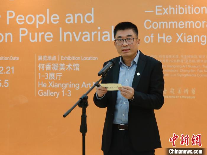 12月21日,“愿年年人月雙清——紀(jì)念何香凝誕辰145周年藝術(shù)精品展”在何香凝美術(shù)館開(kāi)幕。圖為何香凝美術(shù)館館長(zhǎng)蔡顯良致辭。何香凝美術(shù)館供圖