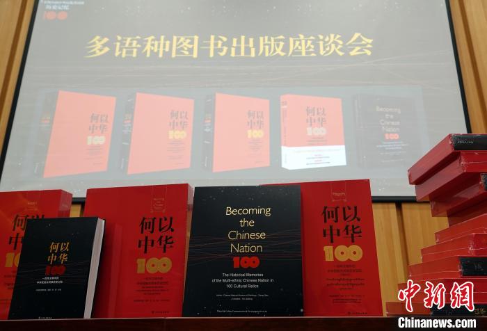 《何以中華》多語種圖書出版座談會在北京舉辦,現(xiàn)場展示的圖書。中新網(wǎng)記者孫自法攝