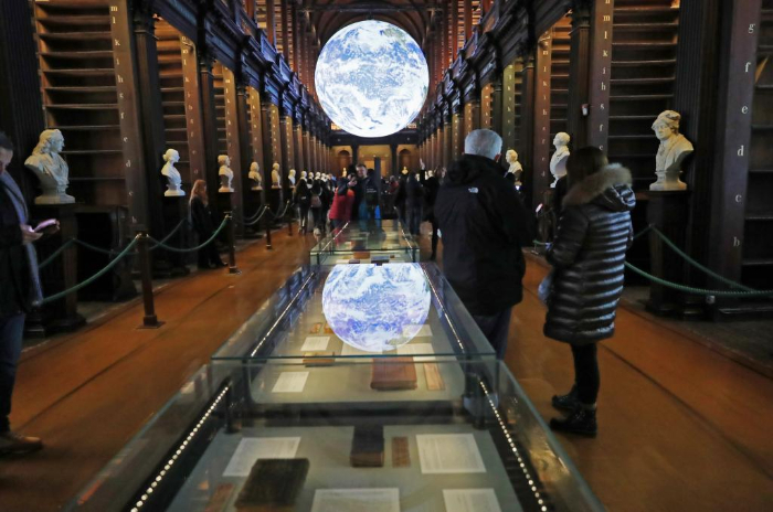 人們?cè)趷?ài)爾蘭都柏林大學(xué)圣三一學(xué)院老圖書館內(nèi)參觀(1月16日攝)。