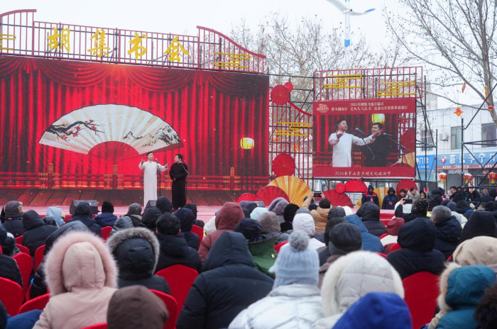 曲藝是群眾樸素真摯的生活創(chuàng)造,百余年來,人們通過曲藝記錄百態(tài)、抒發(fā)情感。站在胡集書會的舞臺前,仿佛能聽到穿越百年風雪滄桑傳來的文化回響。(記者高天)
