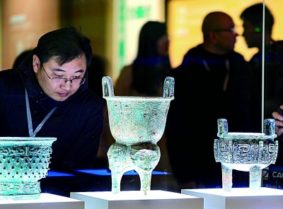 殷墟博物館新館展出的商代青銅器。安陽市委宣傳部供圖