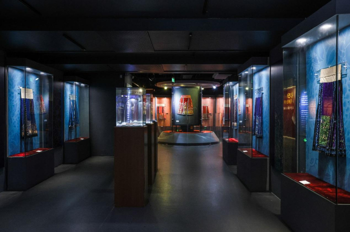“衣生萬物 傳統(tǒng)重構——五色華彩馬面裙”展覽探尋和呈現(xiàn)馬面裙的歷史以及中國古人的制衣智慧與美學風尚,近百條傳統(tǒng)馬面裙實物及多件當代創(chuàng)新設計將持續(xù)展出至7月18日。展覽運用了“五行五色”中國傳統(tǒng)色彩觀念,將展區(qū)分為赤、藍、黃、白、黑五個正色板塊,以及綠和多彩(月華裙)等間色板塊。在展示方式上,傳統(tǒng)馬面裙以平面展示為主,當代創(chuàng)新設計的馬面裙則以人臺的立體展示為主。