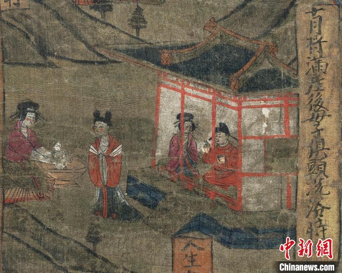 圖為“報(bào)父母恩重經(jīng)變絹畫(huà)”中的“十月將滿,產(chǎn)后母子俱顯,洗浴時(shí)”的畫(huà)面。(資料圖)甘肅省博物館供圖