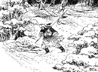 《水滸傳》用豐富細(xì)節(jié)塑造了一個(gè)有血有肉的林沖形象。圖片選自連環(huán)畫(huà)《水滸傳·風(fēng)雪山神廟》。資料圖片