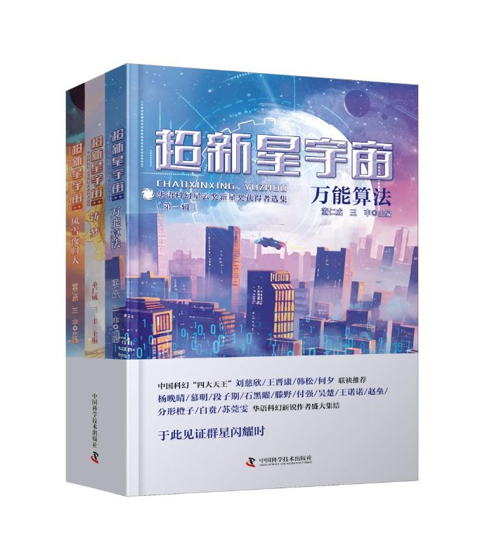 《超新星宇宙》由著名科普科幻作家董仁威、著名科幻學(xué)者三豐主編,第一輯分為《萬能算法》《鑄夢》《風(fēng)雪夜歸人》共三冊,收錄了榮獲第十、十一、十二屆華語科幻星云獎(jiǎng)2016-2020年度新星獎(jiǎng)獲得者楊晚晴、慕明、段子期、石黑曜、滕野、付強(qiáng)、吳楚、王諾諾、趙壘、分形橙子、白賁、蘇莞雯等12名新銳作者的18篇作品。