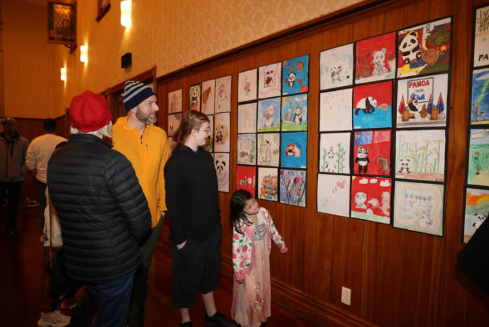 8月10日,在新西蘭懷帕市,人們在2024中國主題圖書展暨“大熊貓遇見幾維鳥”中國新西蘭國際青少年藝術(shù)展上參觀。新華社發(fā)(孫學(xué)良 攝)