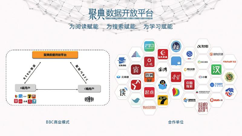 以我為主,推動產(chǎn)業(yè)鏈和生態(tài)圈的協(xié)同共進(jìn)。與以往數(shù)字出版平臺大都采用B2B、B2C等商業(yè)模式不同,聚典平臺采取的是BBC運營模式,即在商務(wù)流上是B2B模式,而在數(shù)據(jù)流上是B2C模式。該模式很好地解決了用戶在數(shù)字閱讀過程中的痛點,同時又很好地平衡了各方利益,C端用戶無需付費便可享受聚典平臺的優(yōu)質(zhì)內(nèi)容資源服務(wù),B端客戶向平臺付費以獲得增值服務(wù),在增加其產(chǎn)品用戶黏性的同時,也減輕了自身的數(shù)據(jù)加工和技術(shù)開發(fā)工作。聚典平臺不僅在總體上創(chuàng)造出增量價值,更通過制度的設(shè)計很好地平衡了增量價值的合理分配,讓各方都分享到其中的一部分,從而調(diào)動了各方的參與性和積極性。