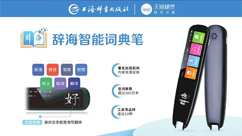 為了更好地適應(yīng)用戶在紙質(zhì)閱讀過程中的快速查檢需求,辭書社經(jīng)過數(shù)年設(shè)計研發(fā),于2022年9月推出辭海智能詞典筆。詞典筆充分依托聚典平臺積累的海量內(nèi)容資源,將1.6億字裝進(jìn)一支詞典筆,內(nèi)置詞條達(dá)到了300余萬條,收錄了《辭?!罚ǖ谄甙妫┖汀洞筠o?!贰稘h語大詞典》《英漢大詞典》《世紀(jì)漢英大詞典》等國家級標(biāo)志性工具書,整合《現(xiàn)代漢語大詞典》《現(xiàn)代漢語規(guī)范詞典》《中國成語大辭典》《同義詞、反義詞大詞典》等精品工具書,讓用戶每次都能夠查有所得。同時,詞典筆實現(xiàn)掃讀結(jié)果1秒呈現(xiàn),并融合數(shù)字智能技術(shù),集掃描查詢、語音助手、聽力練習(xí)、語音翻譯、口語測評、數(shù)碼錄音、生詞本、文本摘抄等八大功能于一體,實現(xiàn)一筆多用。