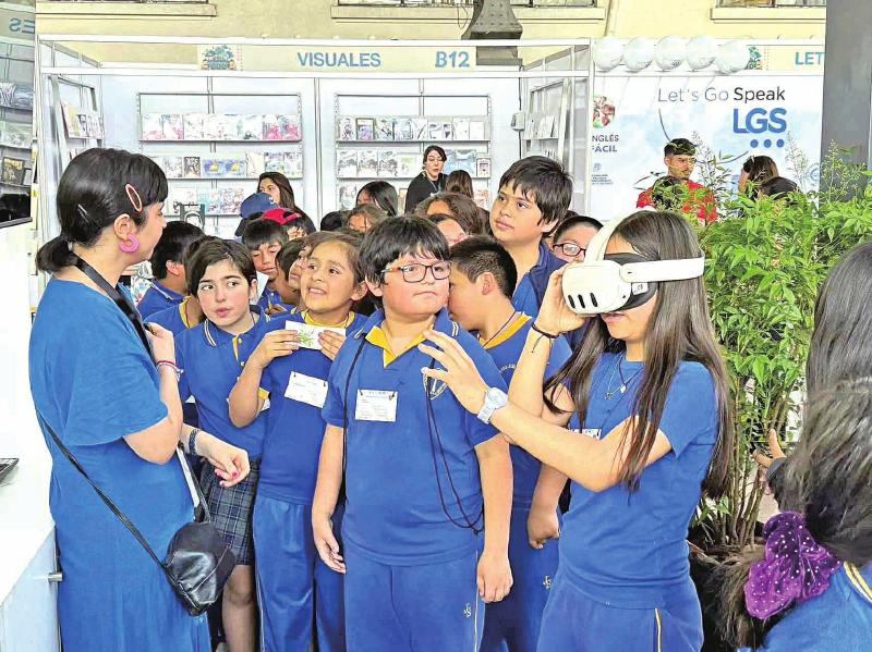 圖為小讀者在書展期間體驗中國展區(qū)內(nèi)的閱讀“黑科技”。