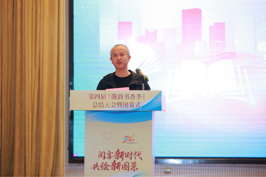 肖學(xué)智館長回顧并總結(jié)了第四屆“隴韻書香季”舉辦的概況和取得的成效。他表示,“今年‘隴韻書香季’期間,我們聯(lián)動(dòng)全省多家圖書館,開展了30大項(xiàng)共百余場閱讀推廣活動(dòng),并將部分重點(diǎn)活動(dòng)帶向基層圖書館,擴(kuò)大書香季‘朋友圈’,共謀‘大家’發(fā)展;今年,我們更加重視品牌宣傳,借助社會(huì)名家、網(wǎng)絡(luò)達(dá)人的力量,喜提多個(gè)‘熱點(diǎn)’和‘熱搜’;今年,隴韻書香季系列活動(dòng)榮獲多個(gè)獎(jiǎng)項(xiàng),讓我們在鼓勵(lì)與肯定中堅(jiān)定信心。未來我們將繼續(xù)與各兄弟單位、媒體、全省讀者朋友們攜手前行,用高質(zhì)量的閱讀推廣發(fā)展成果助力“書香隴原”建設(shè)。”