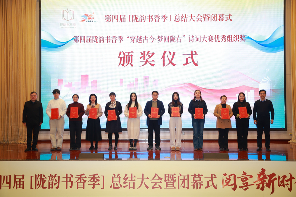 閉幕式上公布并表彰了“優(yōu)秀閱讀推廣活動(dòng)案例獎(jiǎng)”獲獎(jiǎng)人員、“‘穿越古今·夢回隴右’詩詞大賽優(yōu)秀組織獎(jiǎng)”獲獎(jiǎng)人員、“‘閱·見西部’第一季——‘詩歌里的家鄉(xiāng)’(甘肅賽區(qū))最佳人氣獎(jiǎng)和優(yōu)秀獎(jiǎng)”獲獎(jiǎng)人員。