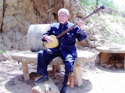 2006年5月,說書人在陜西省延川縣馮家坪村村頭演唱。孫宏亮攝/資料照片