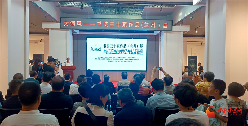 中國甘肅網7月26日訊(西北角·中國甘肅網記者 宋芳科)7月26日下午,由江蘇省書協(xié)、甘肅省書協(xié)、甘肅省藝術館主辦,無錫市書協(xié)、蘭州市書協(xié)、民盟中央美術院無錫分院承辦的太湖風·書法三十家作作品(蘭州)展在甘肅省藝術館揭幕,展覽將持續(xù)至7月30日。