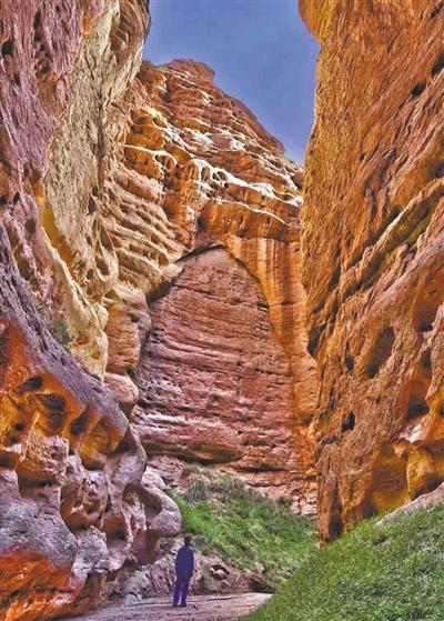 在“云直播”中,蒙古族姑娘有過這樣的描述:平山湖大峽谷海拔高度1500至2550米,其地質(zhì)構(gòu)造屬于紅層地貌,是中生代侏羅紀(jì)至新生代第三紀(jì)沉積形成的“紅色沙礫巖”,距今已有一億八百萬年至兩億四千萬年。大峽谷從谷底到頂部分布著從寒武紀(jì)到新生代各個(gè)時(shí)期的巖層,層次清晰,色調(diào)各異,并且含有各個(gè)地質(zhì)年代的代表性生物化石,又被稱為“活的地質(zhì)史教科書”。