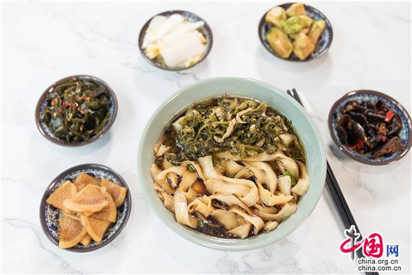 貞味江南一碗萬三手搟面,入口筋道柔韌,面香濃郁,Q彈順滑。佐以清爽可口的阿婆菜、酥爛脫骨的萬三蹄,就著幾碟花式的小菜,呲溜呲溜吃個(gè)快意,美則美矣!